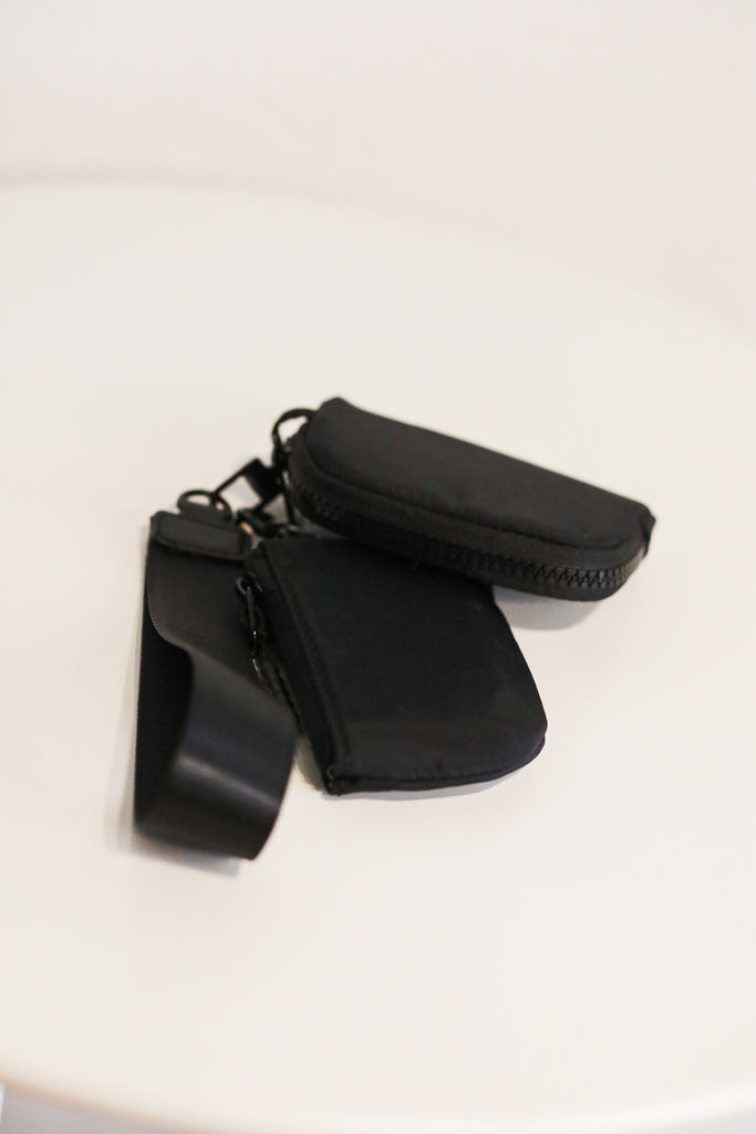 - Exterior Details: Tonal Hardware, Wristlet Strap, Removable Zip Pouches.