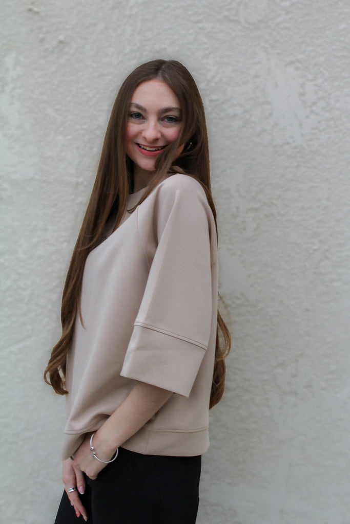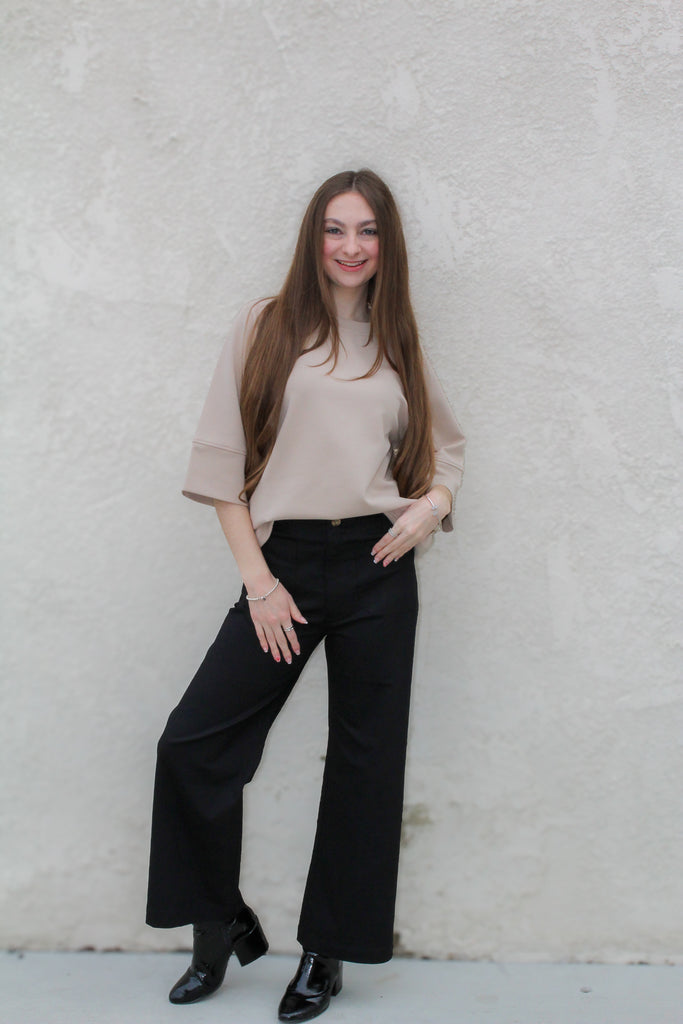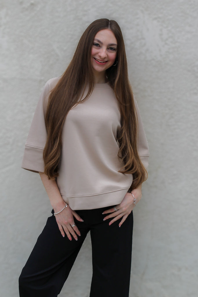 The Christi Scuba Pullover is your new wardrobe MVP. This taupe beauty features a flattering silhouette that works whether you're heading to brunch or the office. The three-quarter length sleeves hit just right, while the scuba fabric gives you that cozy, structured feel. Dress it up with tailored trousers and heels, or keep it casual with your favorite jeans. One piece, endless possibilities.