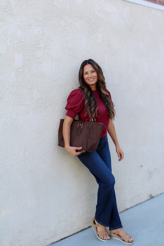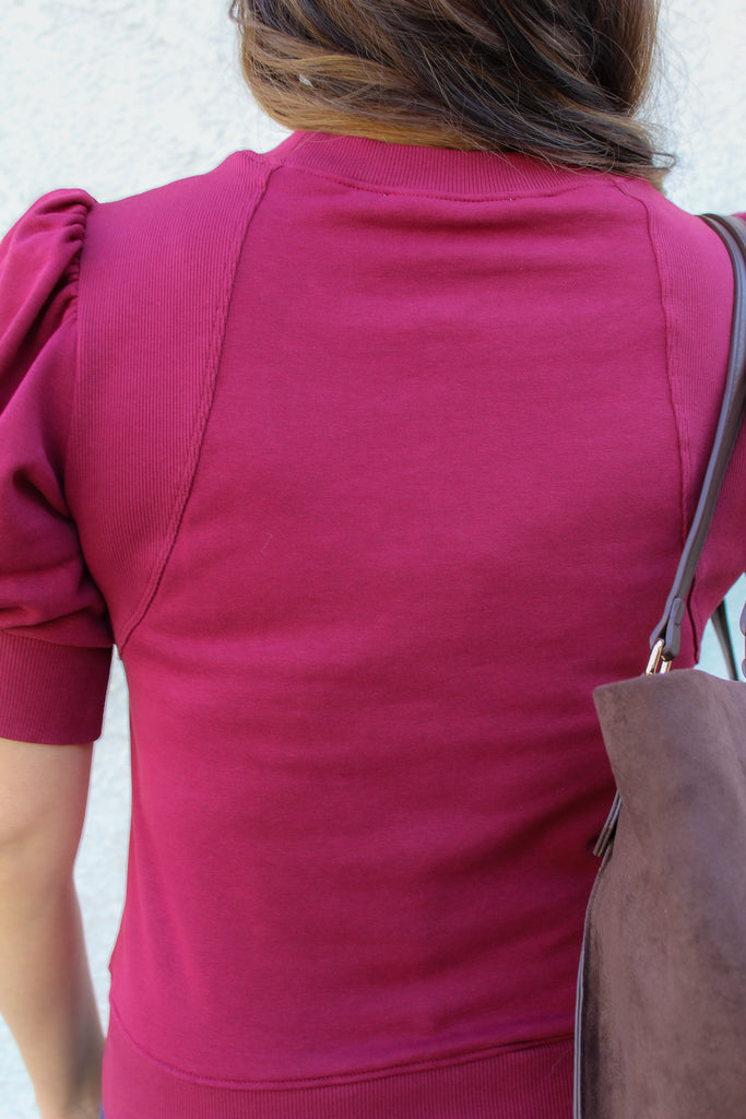 Add a playful flair to your wardrobe with this short puff sleeve sweater. The voluminous sleeves bring a fun and flirty vibe, while the soft knit keeps you cozy and comfy. Ideal for layering or standing out on its own, this sweater makes style and snugness a perfect pair.