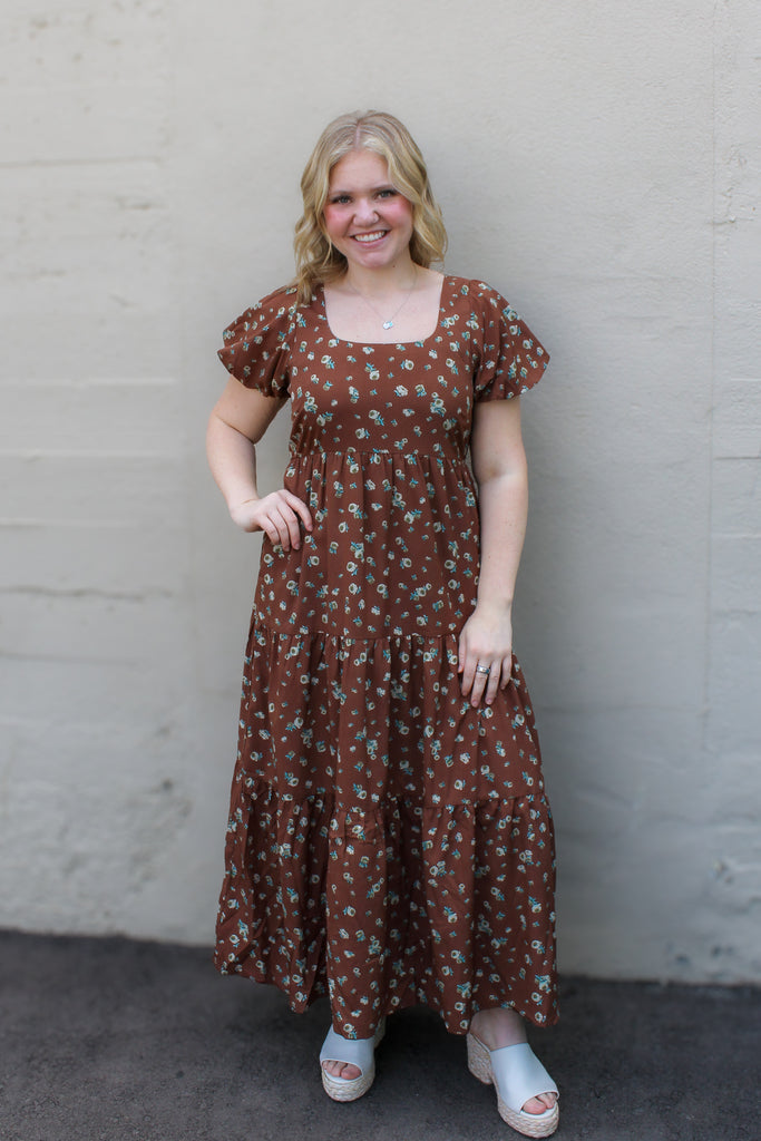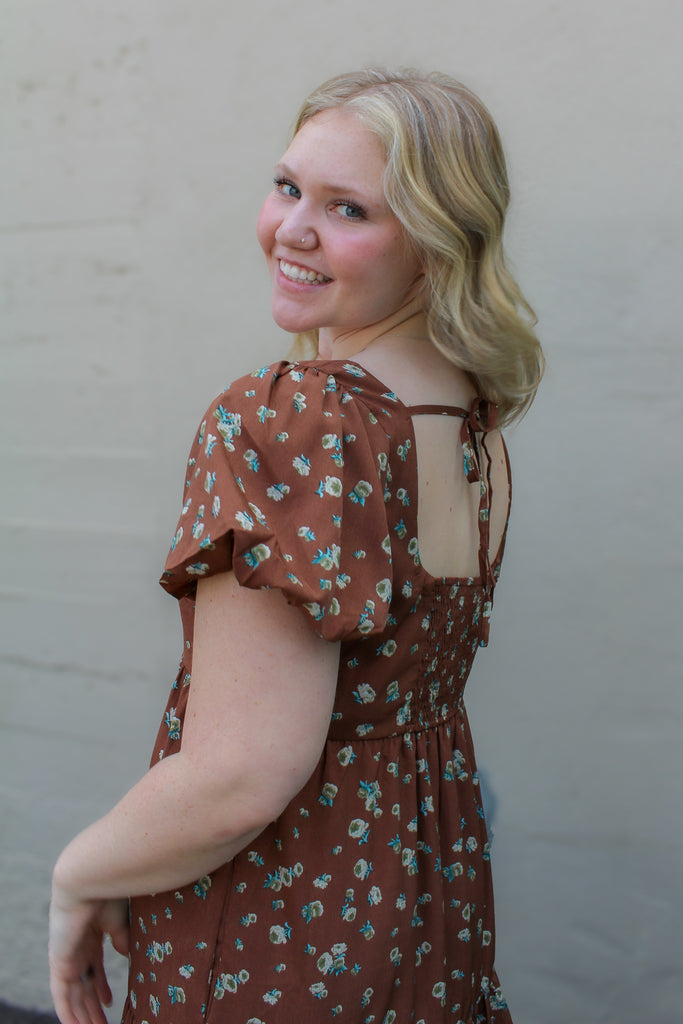 Step into autumn with the Calla Fall Floral Midi Dress, featuring a warm brown base sprinkled with delicate small flowers. Its playful design brings a touch of whimsy to your wardrobe, perfect for cozy days or festive gatherings. The flattering midi length allows you to twirl with ease while embracing the season's charm effortlessly.