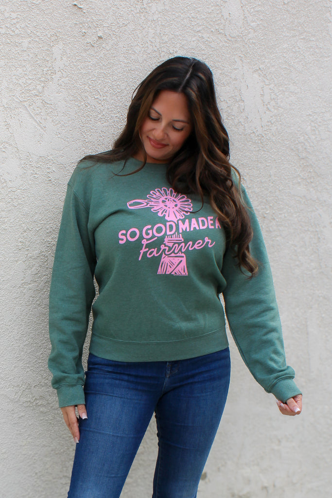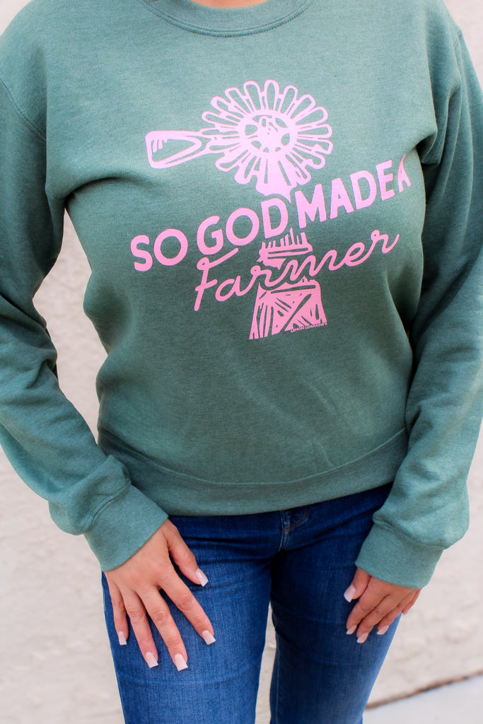 Embrace the essence of rural life with our "So God Made A Farmer" graphic sweatshirt, featuring a striking windmill design. Crafted from comfortable fabric, pullover is a celebration of hard work, simplicity, and the beauty of nature.