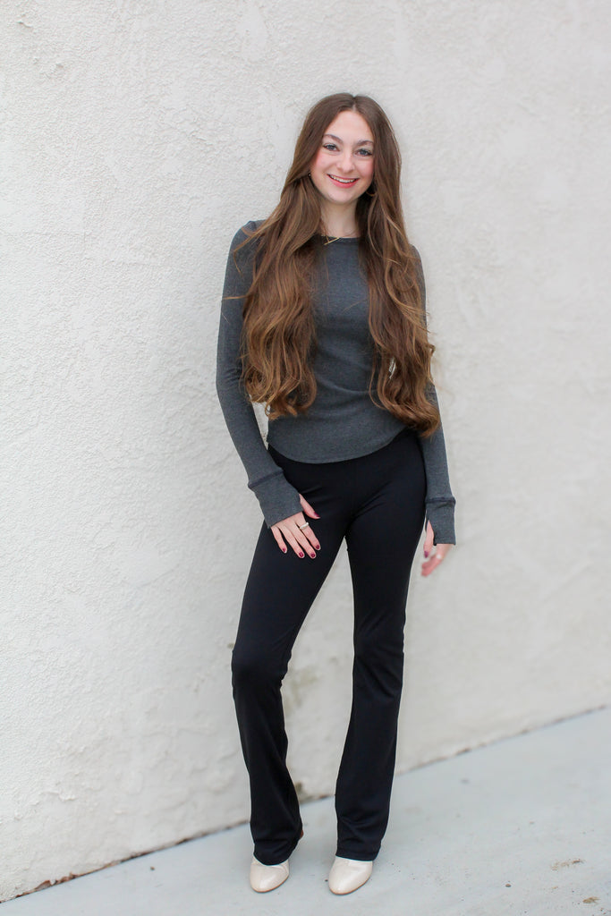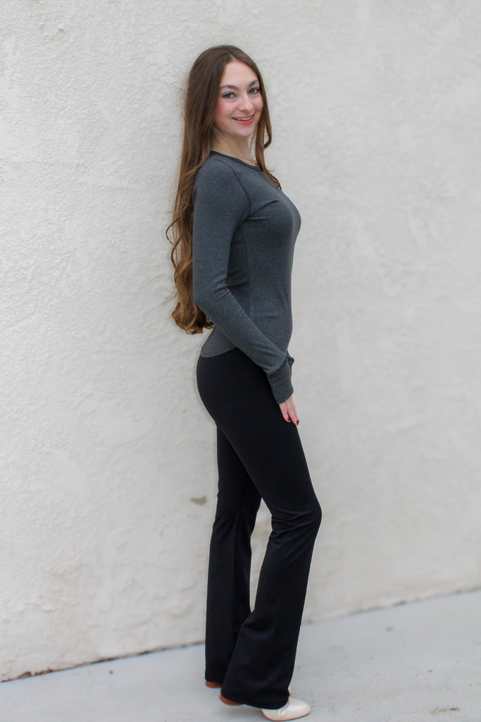 The Newport Bootcut Leggings are designed for comfort, movement, and a sleek silhouette. Featuring a smooth fold-over waistband with no elastic and no side seams, these leggings offer a streamlined, barely-there feel. Crafted from a soft, stretchy polyester-spandex blend with a flattering 30" inseam, they bring an elevated touch to your activewear—perfect for studio, street, or lounge.