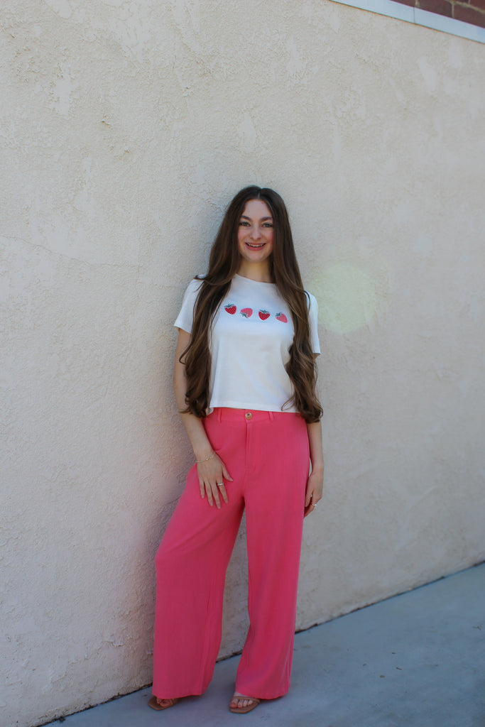 Upgrade your summer wardrobe with our Hibiscus Pink Linen Pants in a gorgeous hibiscus hue! These classy pants feature a relaxed wide leg and are made from soft linen fabric, making them the perfect summer staple. Get ready to turn heads with comfort and style!