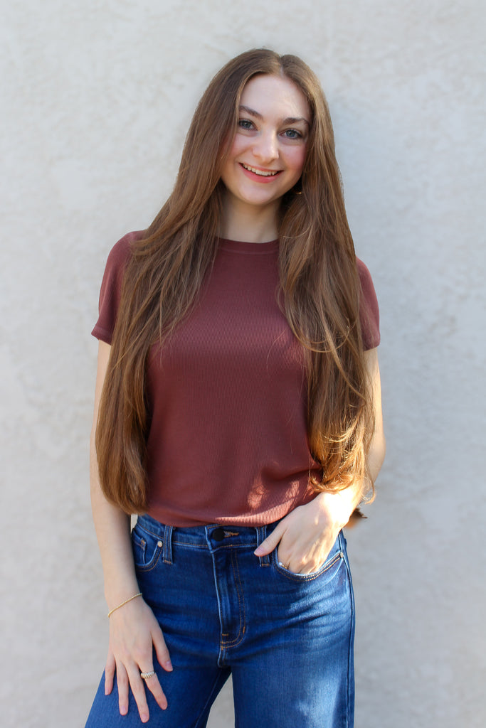 • Ribbed, knit, basic tshirt. Everyone's favorite!