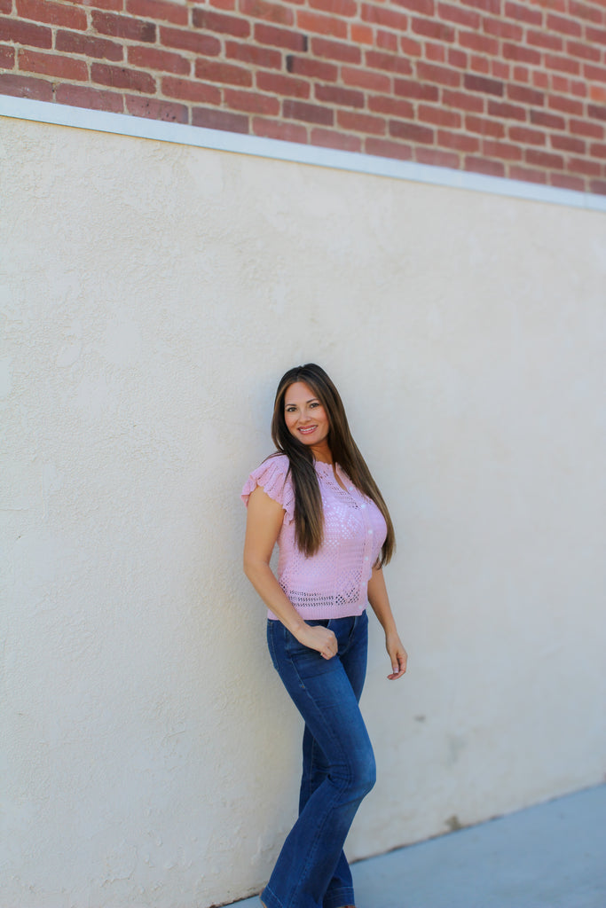 The Sloane Crochet Cardigan combines timeless charm with modern comfort. Crafted with delicate crochet-like detailing, this cardigan features eye-catching ruffle sleeves that add movement and dimension to any outfit. The classic button-down front and crew neckline make it effortlessly versatile—layer it over dresses, tees, or wear it solo for an instantly polished look.
