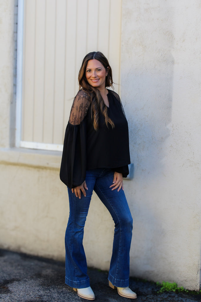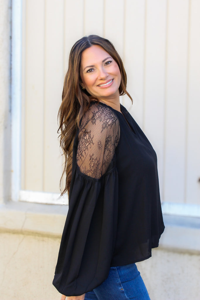 Make a bold entrance this season with our striking balloon sleeve blouse. Featuring delicate lace detailing and an eye-catching statement shoulder design, this black beauty is your go-to piece for holiday gatherings and special occasions. The voluminous sleeves add drama and dimension, while the refined lace accents keep things elegantly sophisticated. Perfect for dressing up or down, this blouse transforms any outfit into something memorable.