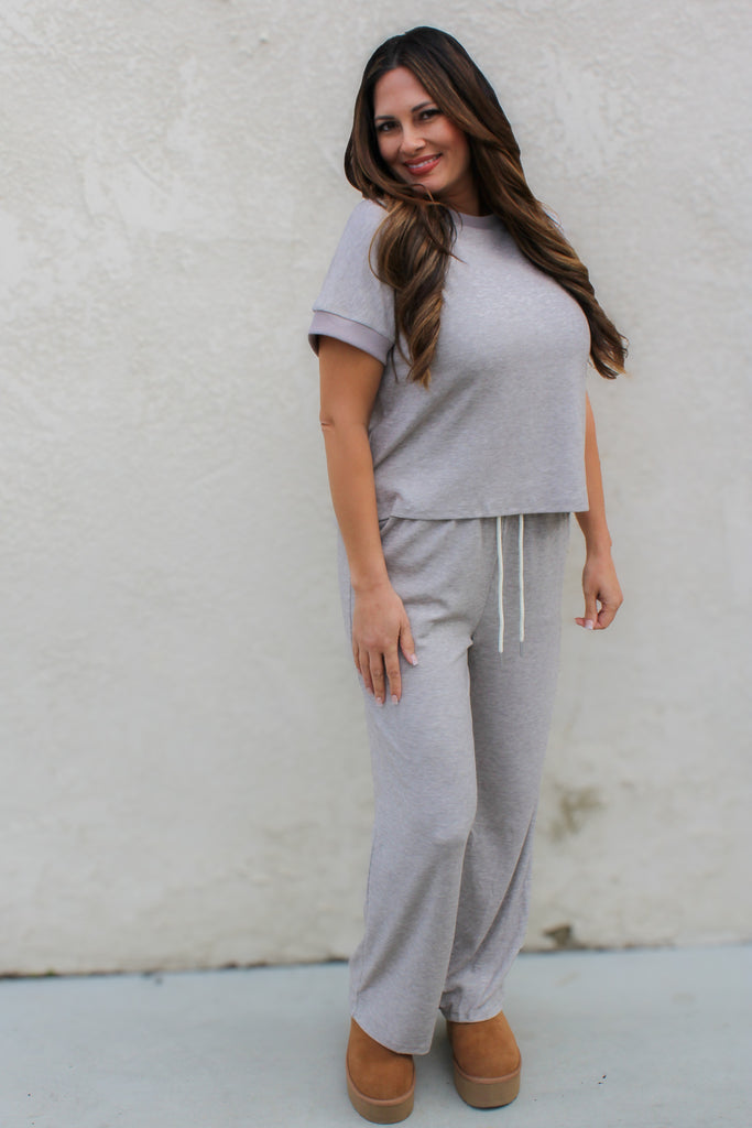 Introducing the Laura Casual Knit Set—your new favorite excuse to stay cozy all day long. This dreamy two-piece features an insanely soft knit exterior paired with a luxurious cotton-feel lining that feels like a warm hug against your skin. The neutral beige-grey palette works with literally everything in your closet. Rock the matching set together for effortless coordination, or mix and match for endless outfit possibilities. The tee's cheeky side slit adds just enough edge, while the drawstring waist keeps everything perfectly in place. Comfort meets style in the most delicious way.